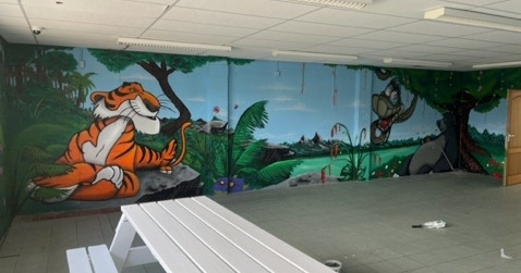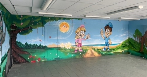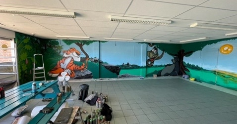 Uitgevoerd door Boy Wognum. Hier is gebruik gemaakt van de Zinsser Allcoat Exterior Satin, dit product zorgt voor een uitstekende bescherming en kan op verschillende ondergronden worden toegepast. Het is een flexibele coating, heeft een uitstekend kleurbehoud en kon in het geval van dit project zonder schuren worden aangebracht. Boy heeft deze coating als onderlaag toegepast en heeft vervolgens met spuitbussen de rest gedaan.